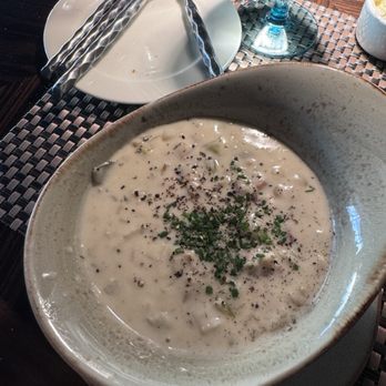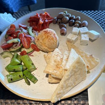 Their clam chowder is exceptional - creamy with a nice balance of spice and savory. Their salmon entree came on a bed of sweet creamy corn. Good flavors, though portion wise the salmon was on the small side. Mediterranean plate was OK - nothing really stood out too much.