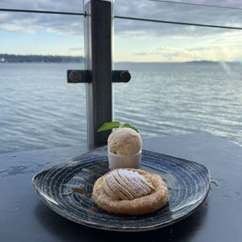 My wife and I went here for 4th of July dinner and this was one of the best experiences we had in Seattle. Sitting on the deck / patio during the evening gives you one of the best views of the sunset in Seattle and really highlights the ambiance. The service was good here. The food was great. My wife ordered the filet while I ordered the cod. Both dishes were expertly prepared and came out tasting great.