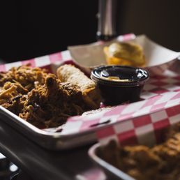 Oct 3, 2023Previous reviewWow! So there was a little bit of a wait to get the food, not gonna lie- I was getting a little hangry! Totally worth the wait. The food was so flavorful, we took ours to go and everything was still hot after the 5 minute drive. The waffle fries were crispy, which I don't usually see, but they were really good. I didn't even put any sauce on the ribs.... I will absolutely be returning. When we left there was actually a line out the door! Plenty of parking and the inside was nicely decorated and had a good amount of seating. Can't wait to try some more things from the menu!