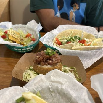 Good service, & it didn't take long for us to get our food. Everything was decently priced & the tempura fish tacos were fire, they look dry in the picture but I promise you they had the perfect amount of sauce & were perfectly fried without being greasy. Their micheladas are also good; a bit spicy & made with clamato. The ahi pocket was alright 5/10