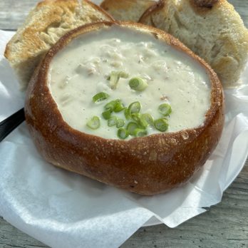 I ordered the clam chowder bread bowl. Although it's not the best clam chowder I've ever tried ( best I've tried was in Seattle!! ) it was still good. I did however add a little bit of salt and pepper to it. The bread was delicious! I would go back based on that alone. I'm still a little curious about they fish tacos, but with those prices I don't know if I will try them.