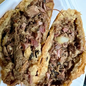 - A pirozhki, a version of an empanada/hand pie. This was amazing! The crust was flaky, buttery, with a beautiful egg wash and the inside was jam packed with beef hash, mushrooms, and potatoes (emphasis on the beef). Wish I'd bought more than one!
