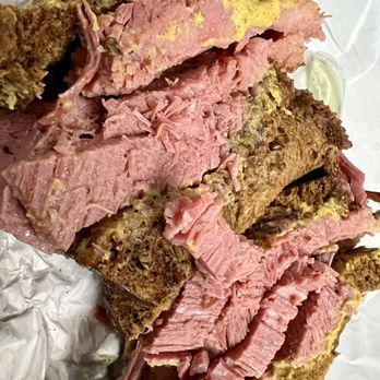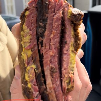 This is the home of the famous, giant pastrami sandwich. If you know of NYC's Katz Deli, their pastrami sandwich is the closest, in size and visual, in the DMV. However, there is a major caveat: There is no option to get lean meat only. Despite being listed as pumpernickel, our sandwich was on rye. There is a large sign that says no customization, no half sandwiches, which I find to be unnecessarily mean. I was surprised to see that their pickles were sitting in a large bucket on the floor. No space to stand up and eat so it is takeout only. Nice selection of sausage samples, seems to be a large selection in their freezer section all the way from duck to chorizo to Thai style sausages. The pastrami, with the fat content, for me is a pass. I get the $22 for the massive size and amount of meat. But this place doesn't replace Loeb's or Attman's for me, given no place to eat, no lean option, and pickles being very limited.