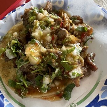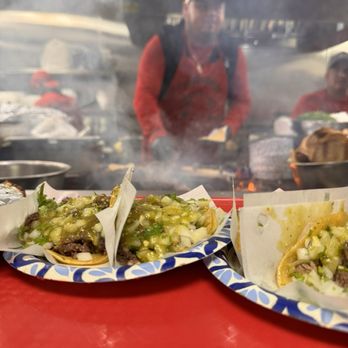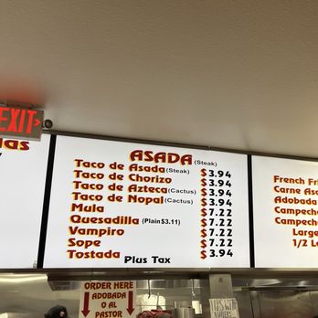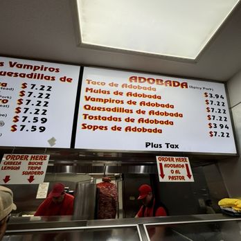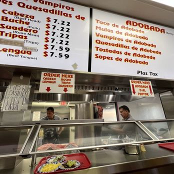 When you enter the establishment, the menu is listed on top. They have various lines for different cuts of meat. You just line up with whatever corresponds to the cut of meat that you prefer. There, you can order what you want whether it's tacos/tostadas, etc.