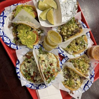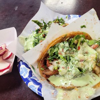 Best tacos around ! Just like Tijuana style delicious flavorful and salsa is on point, one of my favorite taco spots- quick service and a cool vibe