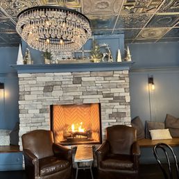 The atmosphere is quaint and upscale farmhouse!! It was so cozy especially with the fireplace! Outdoor seating was just as pretty!