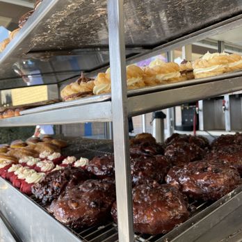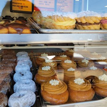 All I can say is that you will not be disappointed. They have everything you can imagine and then some. Lemon filled... Cream puffs... Raspberry filled... Caramel with crumble... Chocolate Tigertail twists... traditional, unusual, seasonal fruit stuffed, good old glazed, and things I can't even remember.
