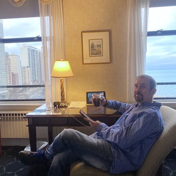 First time here in Chicago staying at The Drake Hotel. Great classic historic Hotel near Michigan Ave in the heart of downtown. Staff here are very friendly and helpful. Easy check in process after 8 pm. Front desk staff helpful with restaurant options outside of hotel at this late time. Elegant interior decor in Lobby. We were upgraded to larger corner king bed room with living room space and 2 TVs. My only grip is the room interior is dated and couch needs to be replaced it is dated and getting worn out. Solid 4 Stars !!