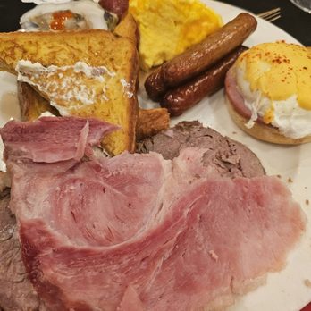 They had a Carving station that had Prime Rib and Ham, an Omelet station and a Pasta station. Some traditional breakfast food and also what was surprising was they had shrimp cocktails and raw oysters. They also had some chicken masala. Steak flank, salmon and a dessert station. Their Tiramisu was really good. I was too busy oogling the food and forgot to take pictures.