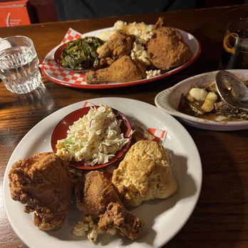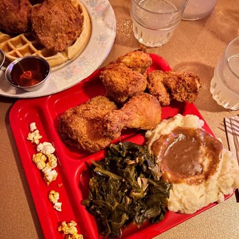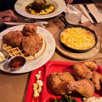 Food - hhmmm, very southern, you need to like collards and grits, chicken is well.. fuck-it get a bucket, when they got it get the alligator nuggets, you won't be sorry. I've had most menu items and was not disappointed. Good hard bar too.
