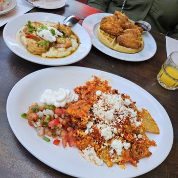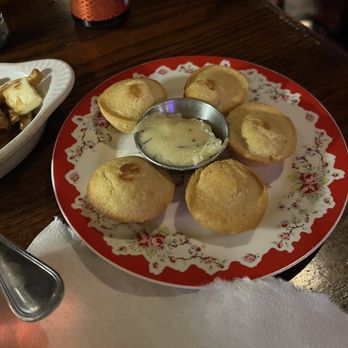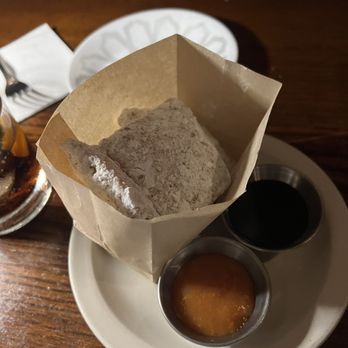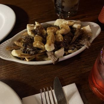 We went on a lucky Thursday as they have the special poutine with brisket; It was delicious. The chicken was fine, very juicy. My friend didn't like the ham hock collard greens at all, he said the spices were odd. I really loved the soft and warm biscuit. I think my favorite of all was the cornbread muffins, a must get!! Beignets were perfectly powdered with chocolate and strawberry puree on the side. Our server was fantastic, very patient and attentive. Cozy spot for a chill hangout.