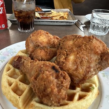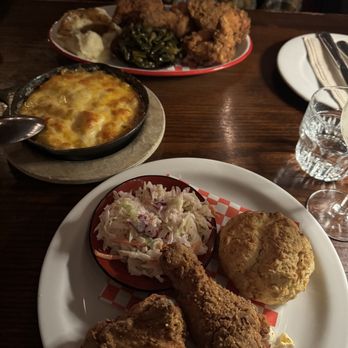 So glad my boyfriend and I decided to try this place out!! Everything was sooo good! The vibe was supee comfy and very home like. Our waiter was really nice and helpful. He recommended the Sweet Low Down drink and it was a 10/10!! My plate came with a coleslaw I was personally not a fan of, but everything else was very delicious... especially the mac and cheese!! Chicken was also pretty juicy!