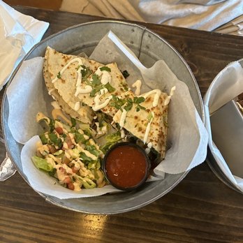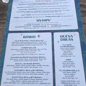 Aside from the plethora of taco combinations, the menu offers salads/bowls, finger foods - quesadillas, nachos, shrimp, wings, tots, a sole tortilla soup, a few combo plates for the Kiddos & desserts.