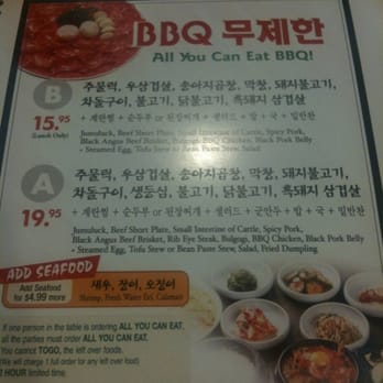 The food was less than impressive. There's more sides and more options for less money at other Korean bbqs.
