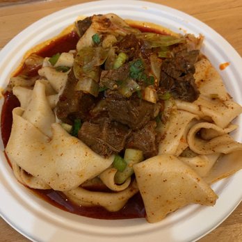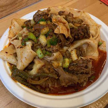They apparently just started accepting credit cards which was a pleasant surprise. The food came out quickly and tasted pretty good. I wasn't falling off my chair from the amazing flavor. It was spicy, oily and filling enough. The pieces of lamb were tiny and kind of fatty but still not the worst thing I've had. As expected this Chinese noodle shop made flavorful food.