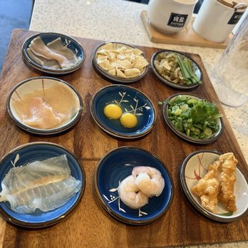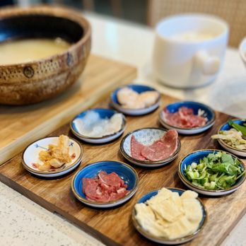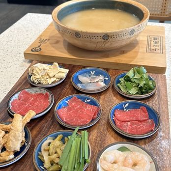 Interesting concept and fun experience putting together your own soup. We got the tomato and original broth crossing bridge noodle soup.