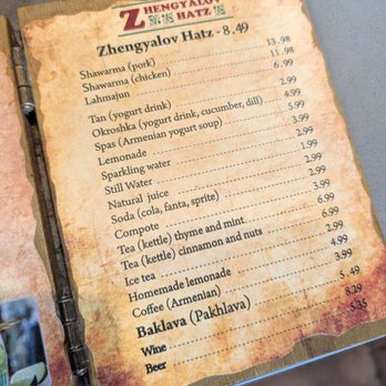 They have a simple wooden menu with mostly drinks and their namesake - the zhengyalov hatz.