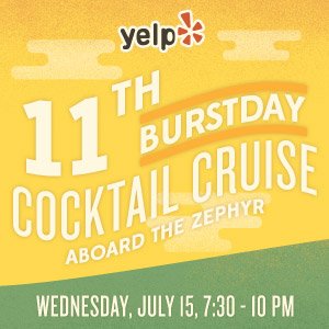 Yelp's turning eleven and since it was so much fun last year, we want to celebrate with YOU again aboard the one-of-a-kind luxury yacht, The ZEPHYR!