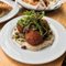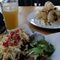 Serpent cucumbers, red mustard frills, fried capers, togarashi avocado puree, beef fat croutons and green tomato vinaigrette