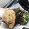 Spicy chermoula tomato sauce, white cheddar, arugula, fermented chili mayo and cilantro pesto on a hero roll