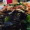 Old bay butter, bourbon habanero vinegar, crunchy ginger apple slaw, green curry mayo and pomegranate seeds on a hero roll