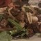 Beef stir-fried with mushrooms.