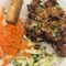 A combination of char-grilled chicken and Vietnamese egg rolls over vermicelli.