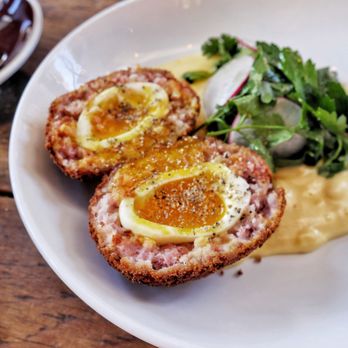 Likely one of the best brunch services I've ever experienced in all of Brooklyn, which earns them top marks in my view. Drinks here are phenomenal, mimosas especially. The ambiance is warmer than I'd expect from what many consider a pub. Many regulars come to this spot specifically and that's a welcome sign that they know what they're doing and doing it right. If the brunch plates we ordered, my fav was the scotch egg. i normal despise egg dishes but this one was recommended to me and it rocked! I also had a bite of a friend's chicken sandwich and can attest to it's juiciness. They were truly attentive from start to finish, despite being crazy busy. This one is a keeper. 5 of 5 stars.