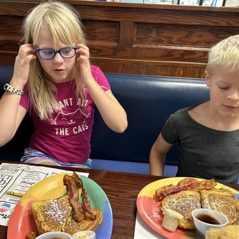 Great selection of tasty food. Very kind waiters food comes quick. Plating is very good and amazing atmosphere. Cinnamon French toast was great Corned beef hash was amazing.